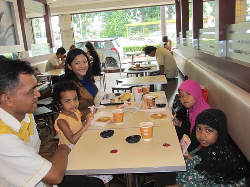 Seeing how cute and adorable some of the little girls there were, diligently doing some mathematic exercises, they decided to treat them to breakfast. When asked where Kak Cik, Pia and Fatin would like to go, “McDonalds!”. The fact that they were enjoying the meal so much made the trip even more fulfilling. After all, it’s not often one gets to eat with the company of girls who leave you tongue-tied when they ask you why Ronald McDonald’s hair was red and not black like the rest of us. We sent them back soon after with big hugs and promises to come for a return visit soon.