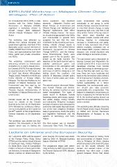NEWS IDFR-UNAM Workshop on Malaysia’s Climate Change Strategies: Plan of Action On 10 September 2014, IDFR, in colla- Scene, explained two important sants emphasised that working boration with the United Nations elements; Malaysia’s Position and individually is not going to solve Association of Malaysia (UNAM), Broad Policies on Environment and climate change; everyone should bear organised a workshop related to Climate Change and Multilateral and in mind that climate change is really climate change titled Malaysia’s Regional Agreements that Affect happening right now, only then it will Climate Change Strategies: Plan of Climate Change Policies. The issues drive action. Some of the key risks in Action. on climate change started in the 1990s Asia which were identified are and communities in general have increased coastal, riverine and urban The workshop was attended by accepted the fact that the main flooding leading to widespread officials from various ministries and contributor to the occurring and acce- damage to infrastructure and settle- government agencies, members of the lerating climate change issues is ments in Asia, increased risk of heat diplomatic corps, council members of human activities. The United Nations related mortality, increased risk of UNAM, UNAM Youth Circle and its UN Framework Convention on Climate flood related death, injuries, infectious Clubs, and representatives from think Change (UNFCC) and the Interna- diseases and mental disorders and tanks, public and private universities tional Environmental Treaty were water shortage in arid areas of Asia. and NGOs. agreed upon in Rio de Janeiro also known as the Earth Summit. The The last session saw a discussion on The workshop commenced with objective of the Earth Summit was to Moving Forward and Preparation for welcoming remarks by Ambassador stabilise greenhouse gases and Climate Summit 2014. It was said that Aminahtun Hj. A. Karim, Deputy Direc- concentration in the atmosphere with developed countries must transfer tor General of IDFR. This was followed the climatic system. In the current green technology to developing coun- by opening remarks by YM Tengku Tan landscape of UNFCC, Malaysia is not tries so that they can catch up. How- Sri Dato’ Seri Ahmad Rithauddeen talking about the positions and ever, there are many loopholes and Tengku Ismail, President of UNAM and policies of Malaysian climate policy flaws to this mechanism and it needs a former Minister of Foreign Affairs, but more of action plans and strate- lot of improvement. Besides, econom- Malaysia. The Keynote Address by the gies it has. ic sectors should take the environ- Minister of Natural Resources and mental sustainability as a factor. Environment was then read by his The second session discussed Malay- Meanwhile, the environmental activ- representative, Dr. Gary William sia’s Current Policies and Actions. ism should also take economic Theseira, Deputy Undersecretary of Among the policies touched on was sustainability into consideration. This the Ministry of Natural Resources and waste management. The types of balance is essential to environment. In Environment. waste found in Malaysia include terms of preparing for Climate Summit hazardous waste, solid waste, agricul- 2014, the involved parties should cut Climate issues will be the primary ture waste, sludge, mining industry down the documentation and be more focus for debate at the Climate and radioactive. Mitigation strategies action oriented. Summit to be held on 23 September and plan of actions were discussed to 2014 followed by continuous discus- overcome solid waste disposal issues. The workshop was officially closed by sion as a key agenda on this subject at Two of the main mitigation strategies Tan Sri Razali Ismail, Deputy President th the 69 session of the United Nations were on governance, mainly the policy of UNAM and Former Permanent General Assembly on 24 September and legislative framework and the Representative of Malaysia to the 2014. aspects of technology and tech- United Nations. niques. The workshop was divided into four sessions. The discussants in the first The third session was on Scientific session which was on Setting the Community View Point. The discus- Lecture on Ukraine and the European Security On 1 July 2014, IDFR, with the support pean Security. The lecture was mode- The lecture focused on history, facts of the Foreign Policy Study Group rated by Dato’ M. Redzuan Kushairi, and socio-politics of Ukraine. Accor- (FPSG) and the Jeffrey Cheah Institute Deputy Chairman of FPSG. ding to Professor Dr. Birch, Ukraine of Southeast Asia, hosted Professor which is located at the heart of Europe Dr. Sarah Birch, Chair of Comparative The programme began with welco- and on the border between the Politics at School of Social and Politi- ming remarks by Dato’ Hussin Nayan, eastern and western halves of the cal Sciences, University of Glasgow to the Director General of IDFR, followed continent, has often been a battle deliver a lecture on Ukraine and Euro- by the lecture. ground between forces that desire 20 bulletin@idfr.gov.my
