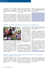 NEWS Transformation Plan, Human Capital briefings on the history, economics, a whole. It is our hope that the experi- Development and Environmental cultural and political aspects of Perak ence and knowledge gained will assist Policies in Malaysia. The participants from the Perak Economic Planning them in preparing to become a new also attended the Human Rights Day Unit and the Northern Corridor member of ASEAN. 2014. Economic Region. Apart from the substantive elements, Overall, the aim and objectives of the the participants also visited the Parlia- programme were met. The partici- ment as part of the introduction to pants unanimously expressed their Malaysia’s governance system. They appreciation for all the arrangements were also introduced to Malaysia’s made and they were confident that the State Governance system through a programme was an opportunity and a visit conducted to the state of Perak. window for the professional develop- While there, they received introductory ment of individuals and Timor-Leste as MTCP: English Language Course for Diplomacy The main objective of the English Language: Pronunciation, Pre- programme was to raise sentation Skills and Public Speaking participants’ awareness and Speech Drafting. and understanding of the nature and diplomat- In addition, the participants were ic issues of English. As privileged to experience state level such, the programme governance when they spent a few was tailored to further days in the city of Johor. They also had improve participants’ the opportunity to experience Malay- proficiency in the use of sian culture during visits to Kuala English in the area of Lumpur Craft Complex, Petronas Twin diplomacy and inter- Tower and the city tour around Kuala national relations, speci- Lumpur. fically in the four skills areas of listening, speak- Overall, the programme received IDFR conducted the MTCP: English ing, reading comprehension and positive feedback from the partici- Language Course for Diplomacy writing. pants in terms of the quality of the 2/2014 from 27 October to 7 Novem- modules offered, credibility of speak- ber 2014. The two-week programme In line with the main objectives of the ers and the smooth running of the was attended by 19 participants, programme, the Training Division with programme. The participants’ feed- namely, from Burkina Faso, Burundi, the cooperation of the Language back helped to strengthen such Cambodia, Cape Verde, Comoros, Division arranged and conducted training programmes in the future from Cote D’Ivoire, Georgia, Iran, Jordan, interactive and contemporary modules the substantive, relevancy and imple- Lao PDR, Mauritania, Mauritius, The such as Active Listening, Writing mentation aspects. Philippines, Seychelles, Uzbekistan, Diplomatically: Sentence Structure Vietnam and Malaysia. and Applying Grammar, The Sound of MTCP: Diplomatic Training Course for International Participants 2/2014 IDFR, through the Malaysian Technical Twenty-one participants took part in Southeast Asia. From Malaysia, there Cooperation Programme (MTCP), this course, comprising country repre- were four local participants; two from organised a three-week Diplomatic sentatives from various regions the Prime Minister’s Department and Training Course for International around the world, including East two from the Ministry of Foreign Participants from 3 to 21 November Africa, Central Africa, Southern Africa, Affairs, Malaysia. 2014. Central Asia, Latin America and 22 bulletin@idfr.gov.my