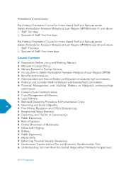 Attendance is compulsory: Pre-Posting Orientation Course for Home Based Staff and Spouses under Sistem Pentadbiran Kerajaan Malaysia di Luar Negara (SPKM)/Grade 41 and above i. Staff: Ten days ii. Spouses of Staff: First fve days Pre-Posting Orientation Course for Home Based Staff and Spouses under Sistem Pentadbiran Kerajaan Malaysia di Luar Negara (SPKM)/Grade 38 and below i. Staff: Five days ii. Spouses of Staff: First three days Course Content U Preparation Before Living and Working Abroad; U Malaysia’s Foreign Policy; U Matters Related to Foreign Service; U Introduction to Sistem Pentadbiran Kerajaan Malaysia di Luar Negara (SPKM); U Benefts and Incentives; U Administrative and Service Matters at Malaysia’s embassies/high commission; U Protocol and Consular Work at Malaysia’s embassies/high commission; U Financial Management and Auditing Matters at Malaysia’s embassies/high commission; U Cross-Cultural Communication; U Crisis Management at Missions; U Legal Matters; U Standard Operating Procedure for Humanitarian Crisis; U Grooming and Social Etiquette; 36 U Fine Dining, Reception and Offcial Entertaining; U Royalty and Palace Protocol; U Diplomacy and The Art of Conversation; U Public Diplomacy; U Role of Spouse; U Global Movement of Moderates; U Ethics and Integrity; U Bribery; U Public Diplomacy; U Media Skills; U Enhancing Personal Security Awareness; U Government Transformation Plan and Economic Transformation Plan; U Understanding Terrorism from the Global, Regional and National Perspectives; 2015 Prospectus