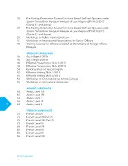 34 Pre-Posting Orientation Course for Home Based Staff and Spouses under Sistem Pentadbiran Kerajaan Malaysia di Luar Negara (SPKM) 5/2015 (Grade 41 and above) 34 Pre-Posting Orientation Course for Home Based Staff and Spouses under Sistem Pentadbiran Kerajaan Malaysia di Luar Negara (SPKM) 6/2015 (Grade 41 and above) 39 Workshop on Public International Law 41 Workshop on International Negotiations for Senior Offcers 43 Training Courses for Offcers and Staff at the Ministry of Foreign Affairs, Malaysia ENGLISH LANGUAGE 46 Say it Right 1/2015 46 Say it Right 2/2015 48 Effective Presentation Skills 1/2015 48 Effective Presentation Skills 2/2015 50 Building Blocks of Good English 52 Effective Writing Skills 1/2015 52 Effective Writing Skills 2/2015 54 Workshop on Communicating Across Cultures 56 Workshop on Intercultural Awareness ARABIC LANGUAGE 60 Arabic Level XII 62 Arabic Level VIII 64 Arabic Level I 66 Arabic Level IX 4 68 Arabic Level II FRENCH LANGUAGE 72 French Level II 74 French Level VI (Part 2) 76 French Level VIII (Part 2) 78 French Level III 80 French Level VII 82 French Level IX 84 French Level IV 86 French Level VIII 2015 Prospectus