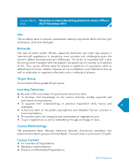 Course Name Workshop on International Negotiations for Senior Offcers Date 25-27 November 2015 Aim The workshop aims to sharpen participants’ existing negotiation skills with the right techniques, skills and strategies. Rationale The task of public sector offcials, especially diplomats and other key players in international negotiations is becoming more complex and challenging given the dynamic global developments and challenges. The ability to negotiate well is also becoming more important with the greater role played by civil society in all spheres of life. Thus, senior offcials need to acquire a repertoire of negotiation skills to defend and promote national interests at various bilateral and multilateral fora as well as to be able to negotiate effectively with a multitude of players. Target Group Government offcers grade 48 and above. Learning Outcomes By the end of this workshop, the participants should be able: U To develop their knowledge on the various theories, modus operandi and techniques of negotiations; U To upgrade their understanding on practical negotiation skills, tactics and 41 strategies; U To become alert to the pitfalls, assumptions and mistakes that are common in most negotiations; U To examine one’s own strengths and weaknesses as negotiators; and U To gain experiences as well as networking through exchange of ideas. Course Methodology The participants learn through classroom lectures, discussions, simulation and practical exercises in groups and individually. This workshop is conducted in English. Course Content U An Overview of Negotiations; U Mediation and Arbitration; U Bilateral and Multilateral Negotiations; 2015 Prospectus