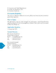 U Economic and Trade Negotiations; U Profle of a Negotiator; and U Simulation Exercises. Prerequisite/Eligibility This course is offered to mid-career to senior offcers nominated by their ministries/ government agencies. How to Apply All applications must be made through the participants’ ministries/government agencies using the Online Course Application System (CAS), which can be accessed at http://cas.idfr.gov.my Application Deadline 13 November 2015. Contact Persons Ms. Romaiza Ab Rahman Senior Deputy Director E-mail : romaiza@idfr.gov.my Tel : +603 2149 1014 Fax : +603 2145 7015 Ms. Dzuita Mohamed Assistant Director E-mail : dzuita@idfr.gov.my 42 Tel : +603 2149 1116 Fax : +603 2145 7015 2015 Prospectus