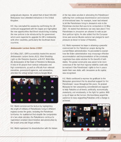 Ambassador Lecture Series 2/2021 environment for the Palestinian people during the
