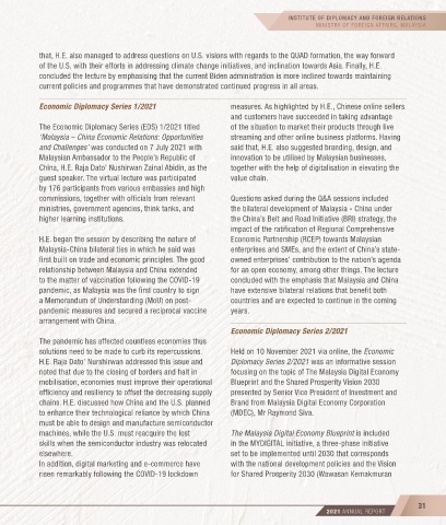 H.E. Raja Dato’ Nurshirwan addressed this issue and Diplomacy Series 2/2021 was an informative session