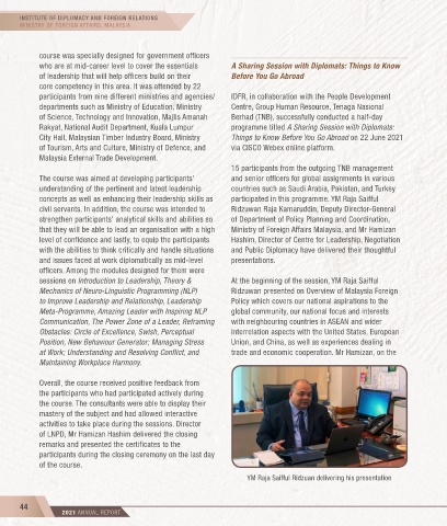 level of confidence and lastly, to equip the participants Hashim, Director of Centre for Leadership, Negotiation