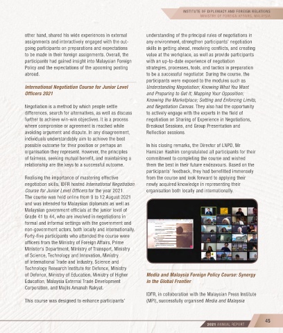 participants had gained insight into Malaysian Foreign with an up-to-date experience of negotiation