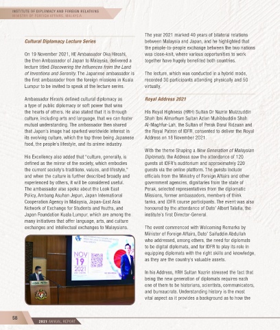 Ambassador Hiroshi defined cultural diplomacy as Royal Address 2021