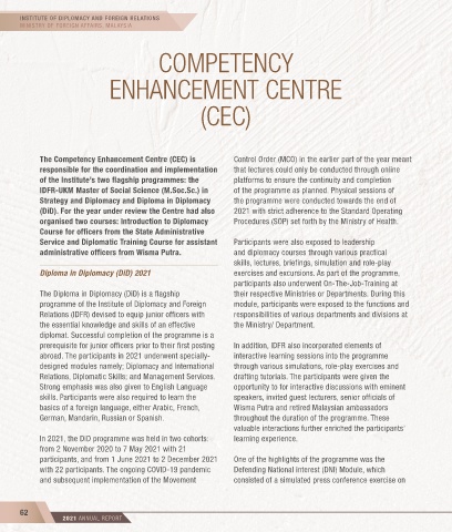 The Competency Enhancement Centre (CEC) is Control Order (MCO) in the earlier part of the year meant