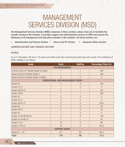 The Management Services Division (MSD) comprises of three sections, whose roles are to facilitate the