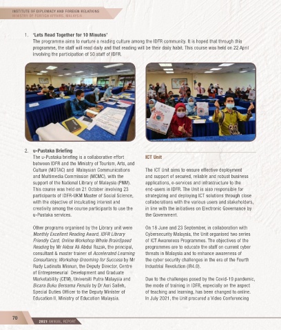 Monthly Excellent Reading Award, IDFR Library Cybersecurity Malaysia, the Unit organised two series