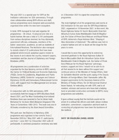 In total, IDFR managed to host and organise 58 Royal Highness Sultan Dr Nazrin Muizzuddin Shah Ibni