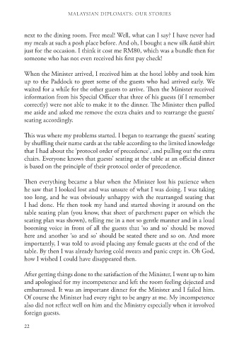 embarrassed. It was an important dinner for the Minister and I failed him.