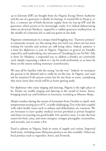 and the use of a generator is ideally for backup. A normal life in Abuja is, in