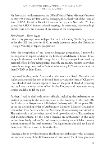 My f rst task at headquarters was the Of cial Visit of Prime Minister Nakasone
