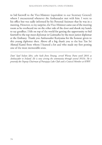 this young diplomat then. Above all a big thank you to the late Tan Sri