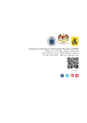 MINISTRY OF FOREIGN AFFAIRS MALAYSIA Institute Of Diplomacy And Foreign Relations (IDFR) Ministry of Foreign Affairs, Malaysia Jalan Wisma Putra, 50460 Kuala Lumpur T +603 2149 1000 W www.idfr.gov.my IDFRMalaysia